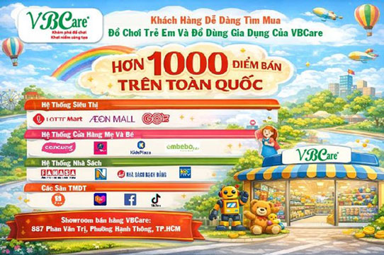 Hiện nay, quý khách có thể dễ dàng tìm mua đồ chơi trẻ em và đồ dùng gia dụng của VBCare tại hơn 1000 điểm bán trên toàn quốc: