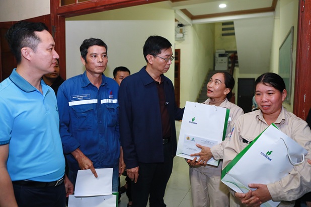 Đoàn công tác Petrovietnam tặng quà, thăm hỏi người lao động tại các đơn vị thành viên.