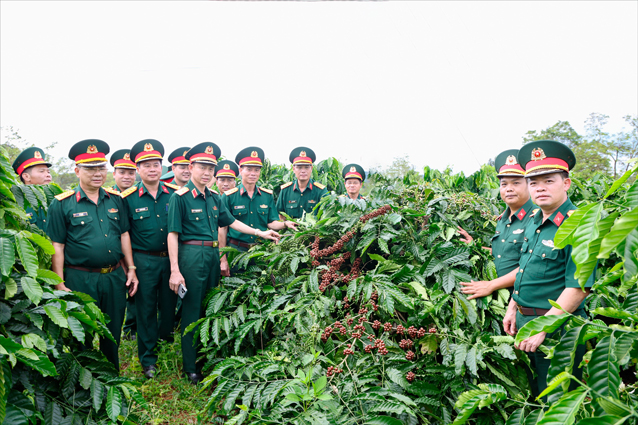 Thiếu tướng Phạm Bá Hiền, Tư lệnh Binh đoàn 16 cùng đoàn công tác kiểm tra, nắm tình hình hoạt động sản xuất, kinh doanh tại Trung đoàn 726.