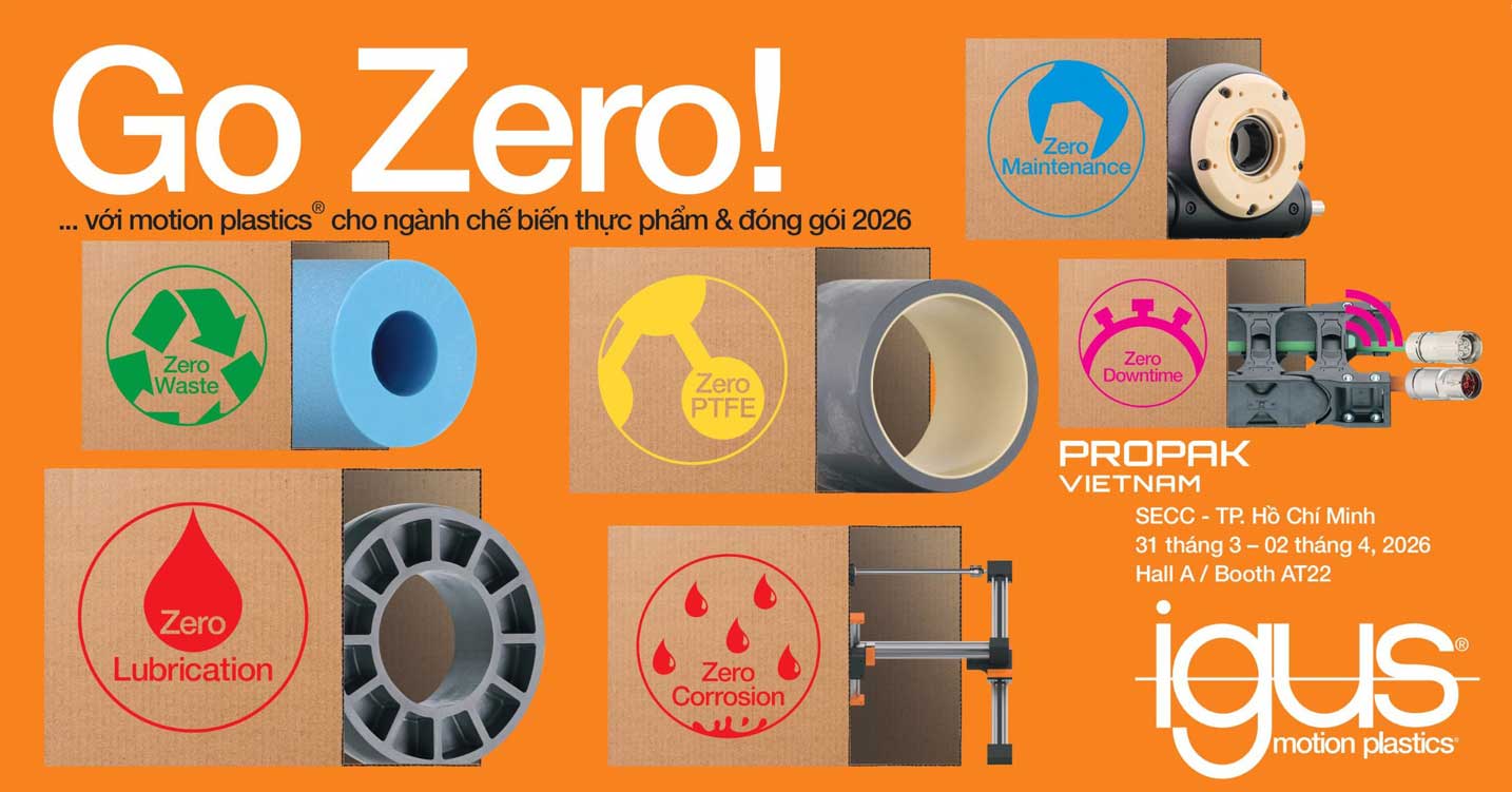 igus® Việt Nam trân trọng kính mời Quý khách đến tham quan gian hàng AT22 (Hall A) tại ProPak Vietnam 2026, để cùng trao đổi, kết nối và tìm kiếm những giải pháp phù hợp cho chiến lược phát triển bền vững của doanh nghiệp trong tương lai từ ngày 31.03.2026 – 02.04.2026 tại Hall, SECC, quận 7, TP. Hồ Chí Minh.