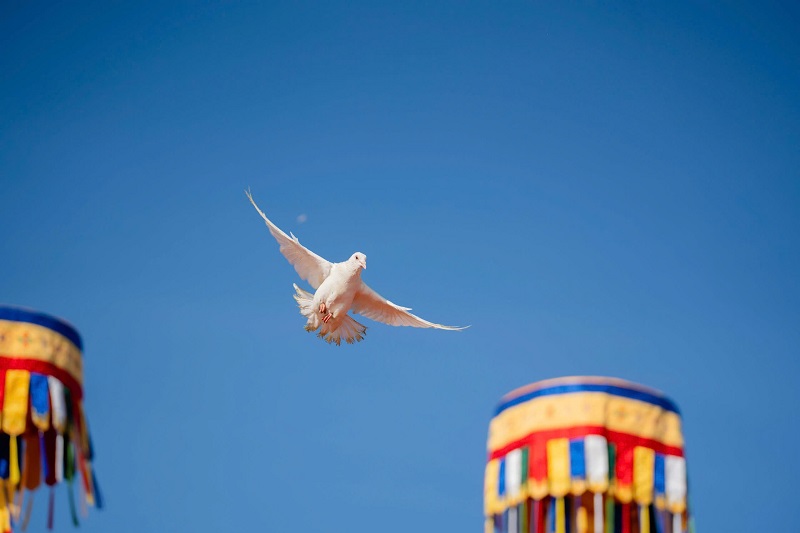 Đặc biệt, nghi thức thả chim bồ câu cầu nguyện hòa bình là khoảnh khắc vô cùng đẹp đẽ, để lại ấn tượng sâu sắc trong đại lễ. Chim bồ câu là biểu tượng phổ quát của hòa bình, của khát vọng sống chung trong hiểu biết và yêu thương, được thả bay lên bầu trời thanh tịnh nơi đỉnh núi Bà Đen linh thiêng-Nóc nhà Nam Bộ, mang theo tâm nguyện chung của toàn thể đại chúng: Nguyện cho đất nước Việt Nam hòa bình, độc lập, hưng thịnh; Nguyện cho nhân dân an cư lạc nghiệp, xã hội ổn định, kỷ cương; Nguyện cho thế giới hòa bình, các dân tộc chung sống trong tinh thần tôn trọng và hợp tác.