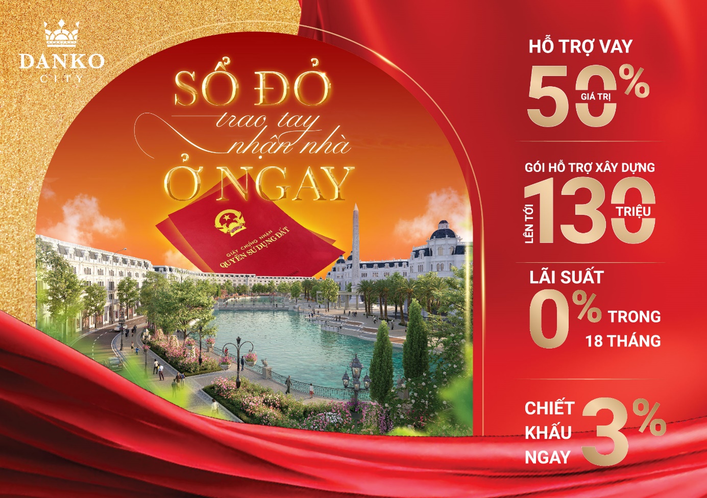 Theo thông tin từ chủ đầu tư, Danko City hiện đang áp dụng các chính sách ưu đãi hấp dẫn dành cho khách hàng như: ngân hàng hỗ trợ vay tới 70% giá trị với lãi suất 0% trong 18 tháng, chiết khấu ngay 3% giá trị sản phẩm và gói hỗ trợ xây dựng đến 130 triệu đồng. Đặc biệt, khách hàng mua căn hộ sẽ được nhận sổ đỏ, bàn giao nhà ở ngay. Điều này giúp Danko City đáp ứng nhu cầu an cư, trở thành lựa chọn hấp dẫn cho nhà đầu tư tìm kiếm giá trị sinh lời bền vững.