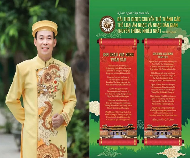 Không dừng lại ở lĩnh vực kinh tế, ông Trần Văn Mười còn được biết đến như một người có nhiều đóng góp nổi bật trong lĩnh vực văn hóa – nghệ thuật. Với tâm hồn nhạy cảm và tình yêu sâu sắc dành cho dân tộc, ông đã sáng tác nhiều ca khúc, bài thơ mang đậm giá trị truyền thống. Tiêu biểu là tác phẩm “Con cháu Vua Hùng toàn cầu” – một sáng tác có sức lan tỏa rộng rãi, góp phần kết nối cộng đồng người Việt trên khắp thế giới, khơi dậy niềm tự hào về cội nguồn dân tộc.