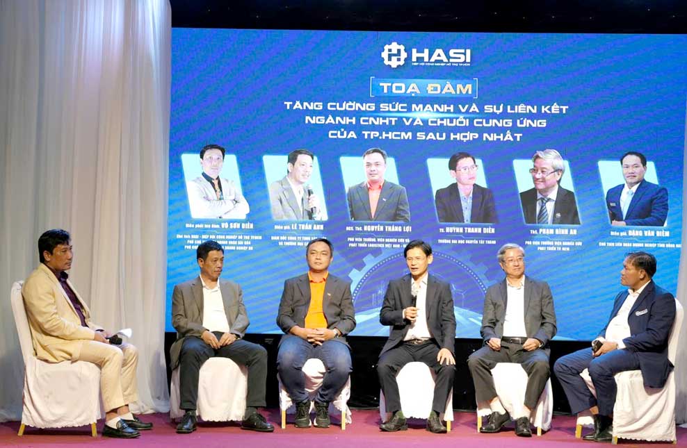 Chủ tịch HASI Võ Sơn Điền (bìa trái) dẫn dắt Workshop “Tăng cường sức mạnh và sự liên kết ngành CNHT và chuỗi cung ứng của TP.HCM sau hợp nhất” tại Đồng Nai vào tháng 8/2025