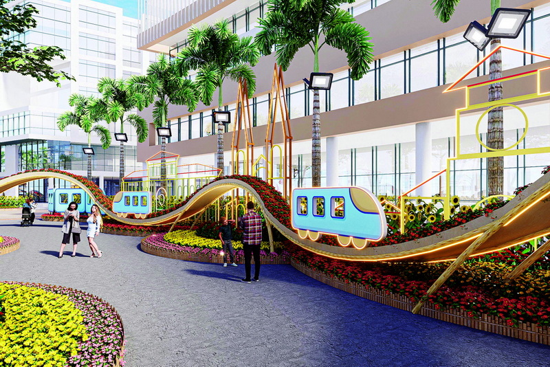 Chủ đề Xuân Gắn Kết được thể hiện đậm nét qua cụm tiểu cảnh Xuân Gắn Kết- Vững Bước Tương Lai nằm ở vị trí trung tâm của Đường hoa Phú Mỹ Hưng 2026. Thiết kế lấy cảm hứng từ tuyến Metro hiện đại, tượng trưng cho sự liên kết và phát triển mạnh mẽ của TP HCM sau sáp nhập. Bên dưới tuyến Metro uốn lượn là các biểu tượng tiêu biểu của TP HCM, Bình Dương và Bà Rịa- Vũng Tàu… được cách điệu bằng đường nét và ánh sáng. Tất cả cùng nhau hội nhập, làm nên một TP HCM rộng mở và phát triển hơn.