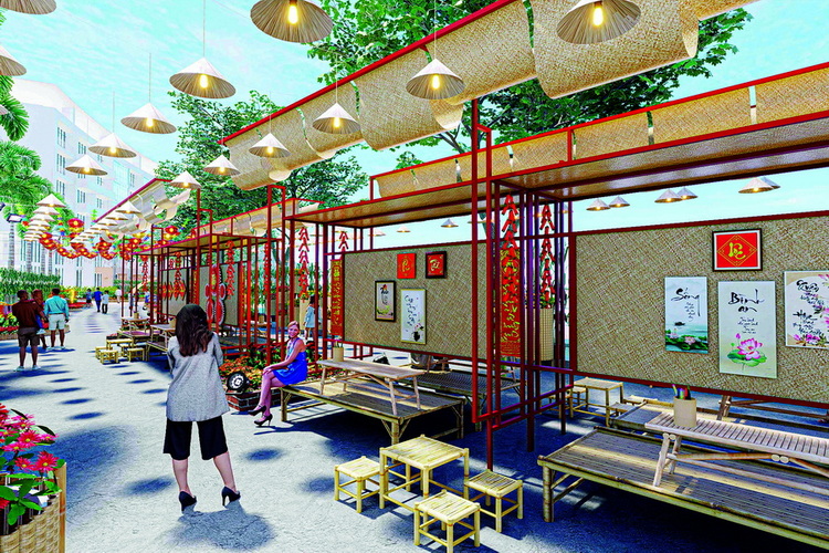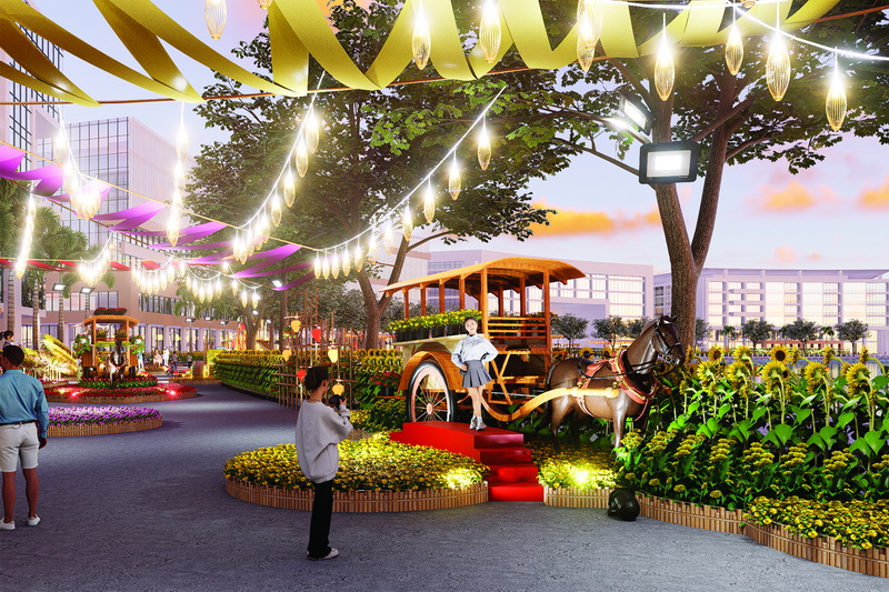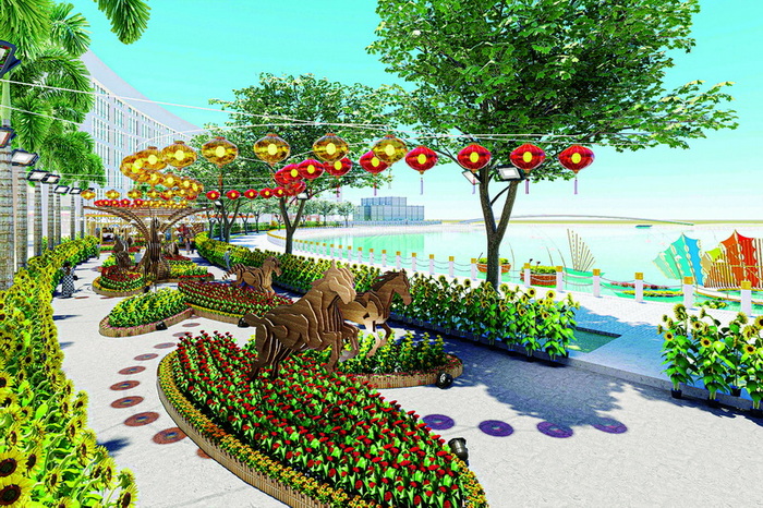 Bên cạnh đó, Đường hoa Phú Mỹ Hưng còn có các tiểu cảnh đặc sắc khác như: Cụm cổng chào, khóm chào được bố trí ở nhiều nơi, vừa là tiểu cảnh nhận diện, “check-in” vừa góp phần truyền tải những thông điệp của chủ đề Xuân Gắn Kết; Tiểu cảnh Nhịp Điệu Tre Việt gợi nhớ vùng đất Nhà Bè xưa- nay là khu đô thị Phú Mỹ Hưng; Tiểu cảnh Phố Ông Đồ thể hiện nét văn hóa xin chữ ngày xuân kết nối giữa truyền thống và hiện đại; Bộ số 2026 rực vàng nổi bật trên nền đỏ của hoa văn, họa tiết truyền thống và những thảm hoa rực rỡ cùng với hình ảnh ngựa đỏ thể hiện khát vọng thịnh vượng, vươn xa.