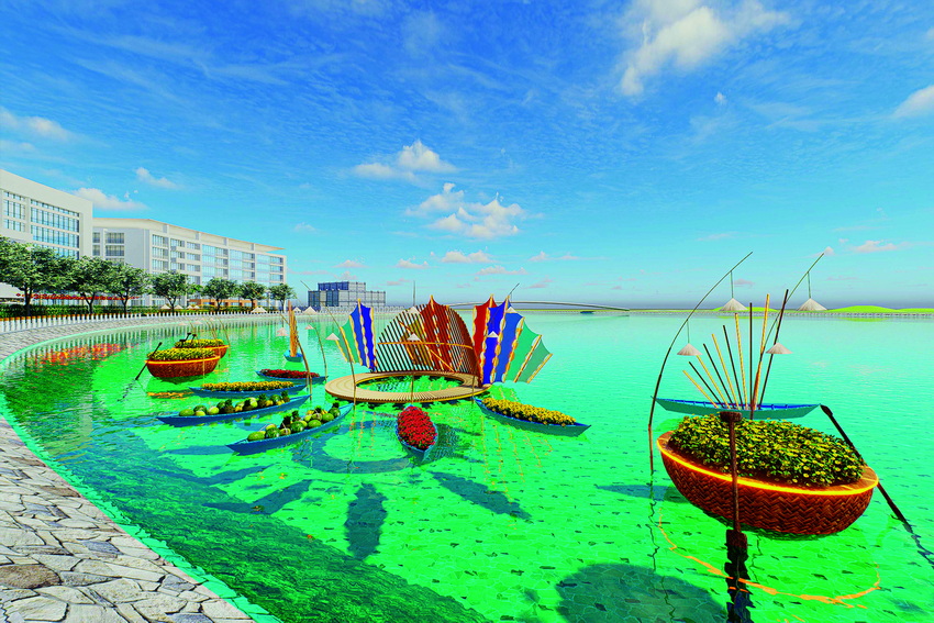 Trên mặt Hồ Bán Nguyệt là cụm tiểu cảnh Cánh Buồm Vươn Xa vừa gợi nhớ hình ảnh thân quen của những làng chài ở Bà Rịa- Vũng Tàu, vùng đất vừa sáp nhập với TP HCM, đồng thời thể hiện tinh thần hải trình, khát vọng vươn xa. Tiểu cảnh sẽ có những mô hình thuyền thúng, những thuyền ghe xuôi ngược và những cánh buồm màu sắc. Khi hoàng hôn buông xuống, ánh sáng nghệ thuật sẽ thắp sáng tiểu cảnh, trở thành ngọn hải đăng cho những chuyến ra khơi.