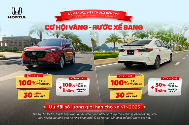 Cơ hội cuối cùng nhận hỗ trợ đặc biệt với số lượng giới hạn dành cho các dòng xe sản xuất năm 2023 (VIN2023): Honda CR-V L/G và Honda City.