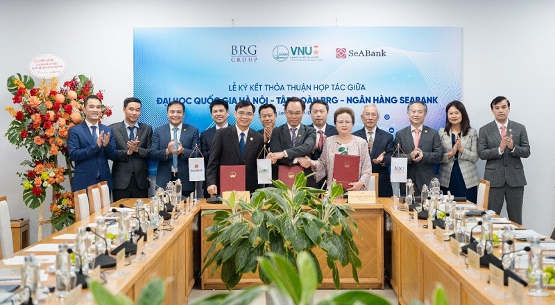 Đại diện Tập đoàn BRG, Ngân hàng SeABank và Đại học Quốc gia Hà Nội ký kết thỏa thuận hợp tác