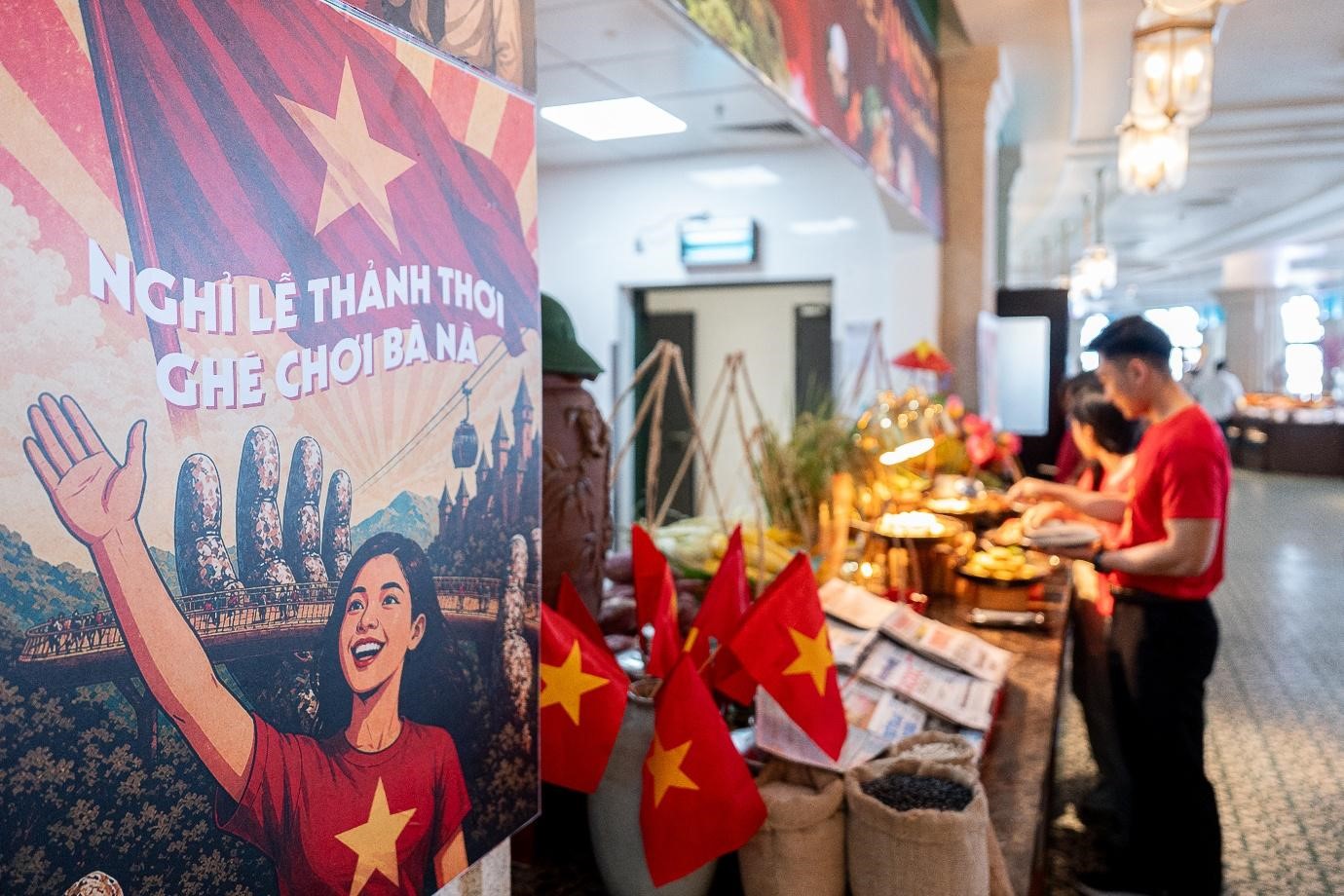 Dịp này, các nhà hàng tại Bà Nà đang trang hoàng vô cùng ấn tượng với cờ đỏ sao vàng cùng set menu đặc biệt mang chủ đề "Độc lập – Tự do – Hạnh phúc" trong dịp đại lễ tại nhà hàng Bốn Mùa và Taiga.