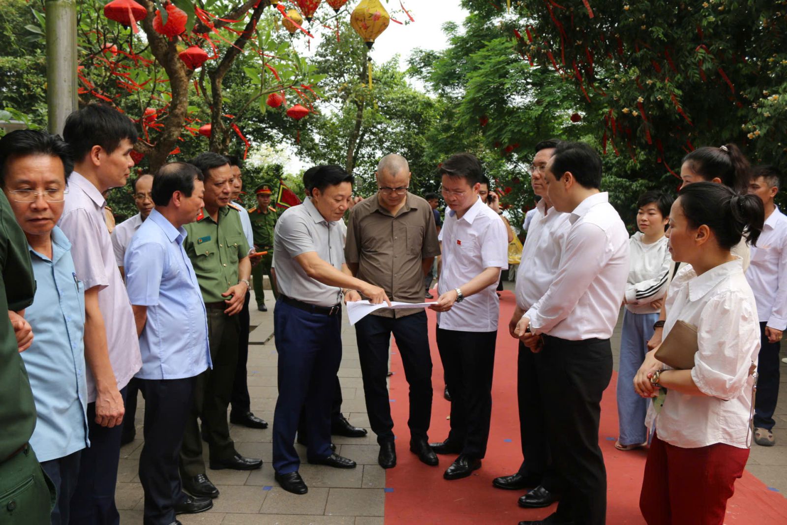 Đoàn công tác đã tập trung khảo sát kỹ các khu vực dâng hương, tế lễ tại Khu di tích lịch sử Đền Hùng để đảm bảo mọi nghi thức diễn ra trang nghiêm, an toàn và thuận lợi nhất cho đồng bào về hành hương .
