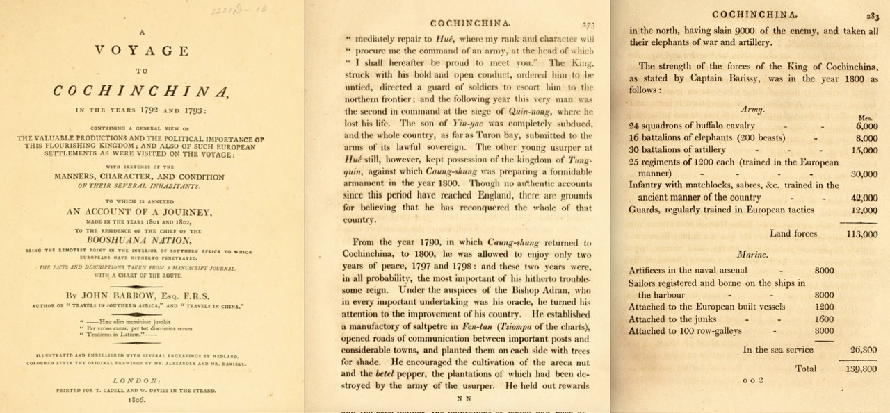 Thứ trưởng bộ hải quân Anh John Barrow ghi rõ nhà máy diêm tiêu khổng lồ và 66200 quân Pháp Ấn (15000 + 30 000 + 12 000 + 8000 + 1200).