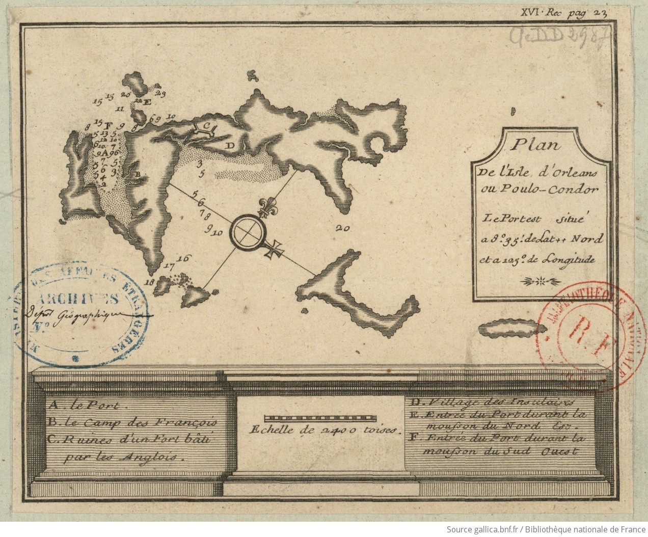 Bản đồ Côn Đảo mang dấu của Bộ Ngoại giao Pháp (từ thời Cách mạng đến Napoleon) khẳng định Côn Đảo là lãnh thổ thuộc Pháp, với quân lính Pháp đang đóng trên đảo. Đây chính là bằng chứng rõ ràng, không thể chối cãi rằng Pháp đã thực thi Hiệp ước Versailles 1787, cử hàng vạn quân sang giúp Nguyễn Ánh, và được trả công bằng chính Côn Đảo.