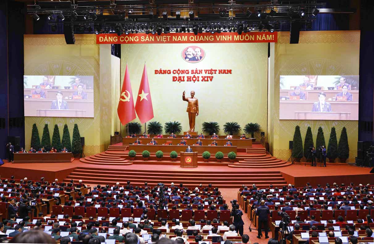 Hôm nay, tại Thủ đô Hà Nội - thành phố ngàn năm văn hiến, anh hùng, thành phố vì hoà bình, trái tim của cả nước - Đại hội đại biểu toàn quốc lần thứ XIV của Đảng Cộng sản Việt Nam khai mạc trọng thể. Thay mặt Đoàn Chủ tịch Đại hội và Ban Chấp hành Trung ương Đảng khoá XIII, tôi nhiệt liệt chào mừng 1.586 đại biểu, đại diện cho hơn 5 triệu đảng viên trong cả nước về dự Đại hội, những đảng viên ưu tú, tiêu biểu cho trí tuệ, bản lĩnh, sức mạnh đoàn kết, sự thống nhất về ý chí, hành động, quyết tâm và khát vọng vươn mình trong kỷ nguyên mới của toàn Đảng, toàn dân và toàn quân ta.