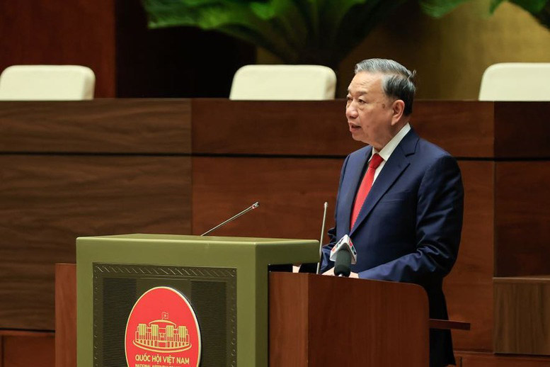Tổng Bí thư Tô Lâm phát biểu tại Hội nghị toàn quốc nghiên cứu, học tập, quán triệt và triển khai thực hiện Nghị quyết Đại hội XIV của Đảng - Ảnh: VGP