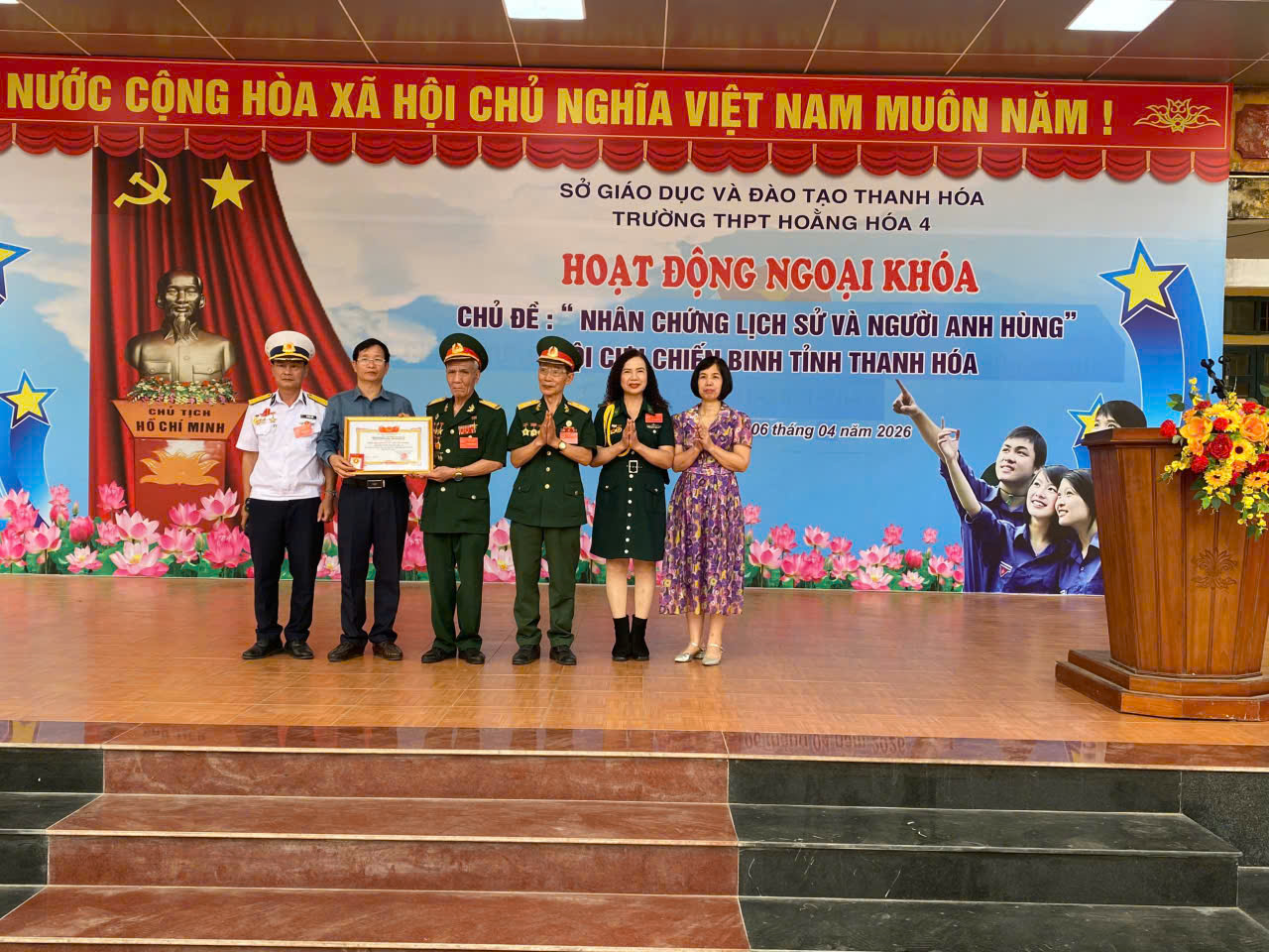 Những ngày hè tháng 4 lịch sử, học sinh tại trường THPT Hoằng Hoá 4 (xã Hoằng Lộc, Thanh Hoá) đang có khoảng thời gian quý giá để cảm nhận về lịch sử dân tộc nhân chuẩn bị 51 năm Giải phóng miền Nam, thống nhất đất nước (30/4/1975-30/4/2026). Giờ đây, trên lớp học không còn những tiết học khô khan trên giấy, lịch sử nay được kể bằng hình ảnh, cảm xúc, truyền trải nghiệm sống động, từ sân khấu hóa bài học đến giao lưu cùng các nhân vật, góp phần thắp sáng ngọn lửa yêu nước, lòng tự hào dân tộc trong học sinh.
