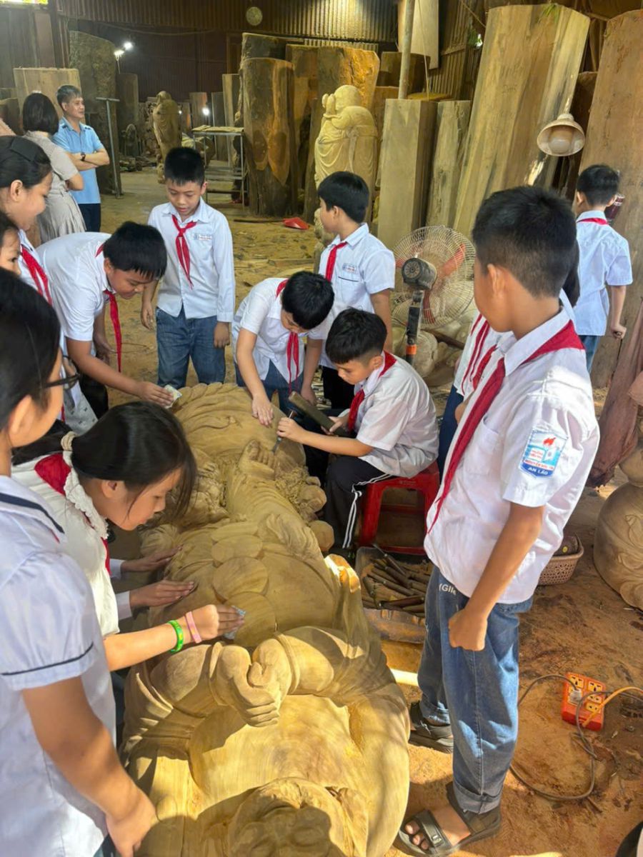 Trải nghiệm của các em học sinh tại làng nghề gỗ mỹ nghệ Đông Giao