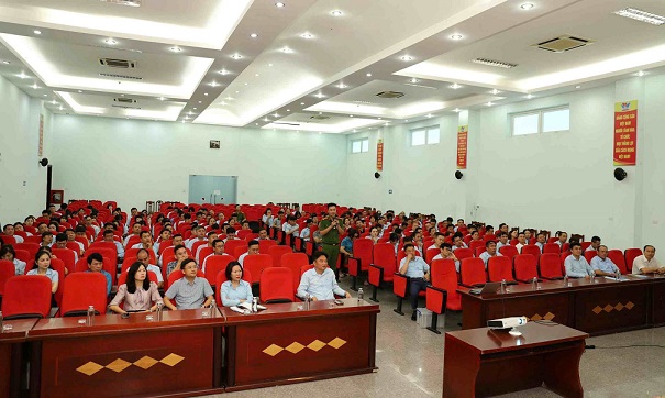 Các đại biểu tham gia Hội nghị tuyên truyền, phổ biến, giáo dục pháp luật về phòng, chống ma túy và phòng chống tội phạm lừa đảo chiếm đoạt tài sản trên không gian mạng