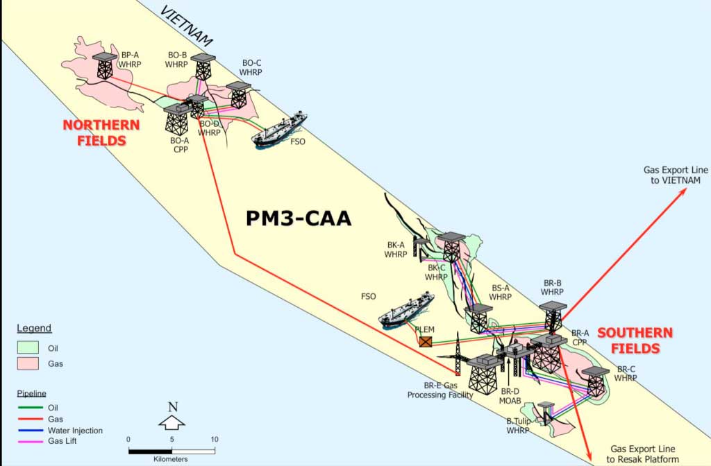 Tập đoàn Công nghiệp – Năng lượng Quốc gia Việt Nam (Petrovietnam) được thành lập vào năm 1975 với sứ mệnh góp phần bảo đảm an ninh năng lượng quốc gia và là trụ đỡ kinh tế trong xây dựng và phát triển đất nước. Sau 50 năm xây dựng và hình thành, Petrovietnam đã có những bước phát triển vượt bậc và toàn diện cả về quy mô và chiều sâu, hoàn chỉnh đồng bộ từ khâu tìm kiếm thăm dò, khai thác dầu khí, đến công nghiệp khí, lọc hóa dầu, điện và năng lượng tái tạo, dịch vụ kỹ thuật dầu khí chất lượng cao. Công ty Dầu khí Quốc gia Malaysia (Petronas) là một tập đoàn năng lượng toàn cầu với nhiều hoạt động ở hạ nguồn và thượng nguồn, từ khai thác dầu thô, khí đốt tự nhiên đến sản xuất hóa dầu, lọc hóa dầu, phân phối nhiên liệu... Lô PM3 CAA được vận hành bởi Tổ hợp Nhà thầu với sự điều hành của Hibiscus Oil & Gas Malaysia Ltd. (35%), và các bên tham gia là PVEP (đơn vị thành viên thuộc Petrovietnam - 30%) và Petronas Carigali Sdn. Bhd. (35%). |