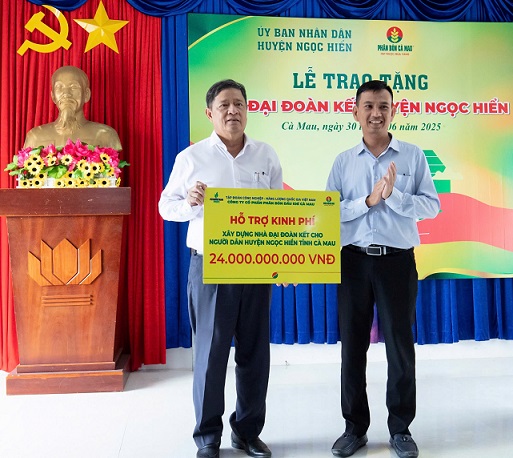 Cụ thể, PVCFC đã khánh thành và bàn giao 300 căn Nhà Đại Đoàn Kết tại huyện Ngọc Hiển cũ nay là Xã Phan Ngọc Hiển (24 tỷ đồng) và 51 căn tại xã Khánh An (2,86 tỷ đồng) cho các hộ dân khó khăn. Các căn nhà được xây dựng với kết cấu tường xây, mái tole kiên cố, nền cao chống ngập và hệ thống điện, nước cơ bản, giúp các hộ dân ổn định nơi ở, đặc biệt là trong mùa mưa bão sắp tới.