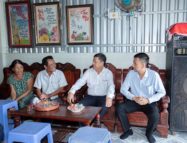 Đại diện Công ty Cổ phần Phân bón Dầu khí Cà Mau đến thăm các hộ gia đình khó khăn được hỗ trợ nhà ở.