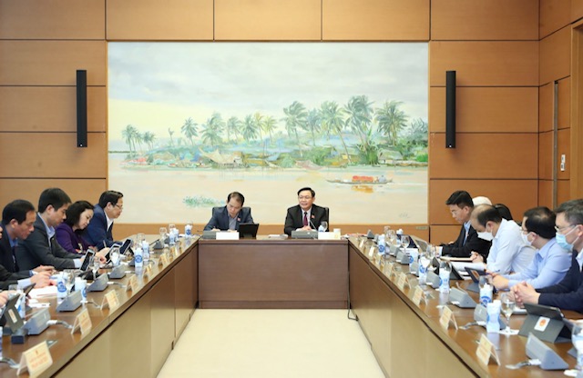 Chủ tịch Quốc hội Vương Đình Huệ thảo luận tại tổ đại biểu số 3. Ảnh: VGP/Nhật Bắc