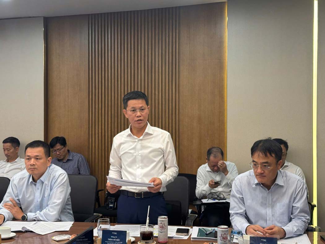 Đồng chí Trần Hồ Bắc - Phó bí thư Đảng ủy, Tổng giám đốc PTSC báo cáo tại buổi làm việc