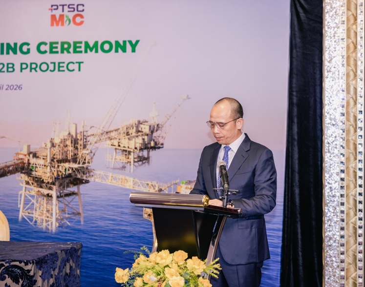 Đại diện lãnh đạo PVEP Cửu Long và PTSC M&C tại lễ ký kết Hợp đồng EPCIC Dự án Sư Tử Trắng Giai đoạn 2B, ngày 22/4/2026 tại TP. Hồ Chí Minh